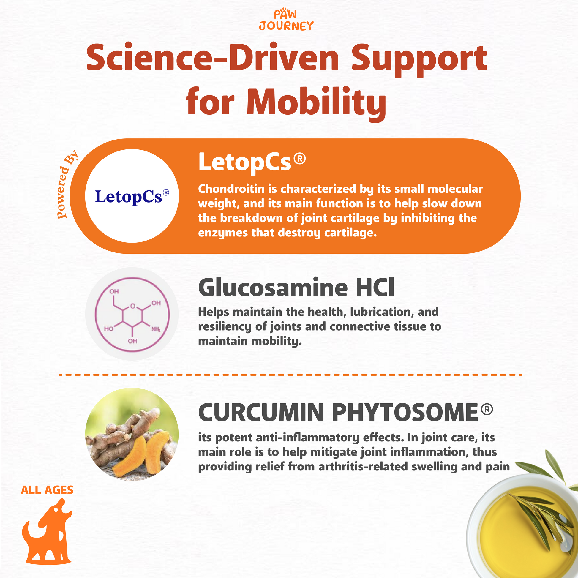 PawJourney® is made with high-quality, trusted ingredients. The formula is inspired by veterinarians and includes well-studied components like Glucosamine and MSM, which are widely recognized as safe and effective for joint support.